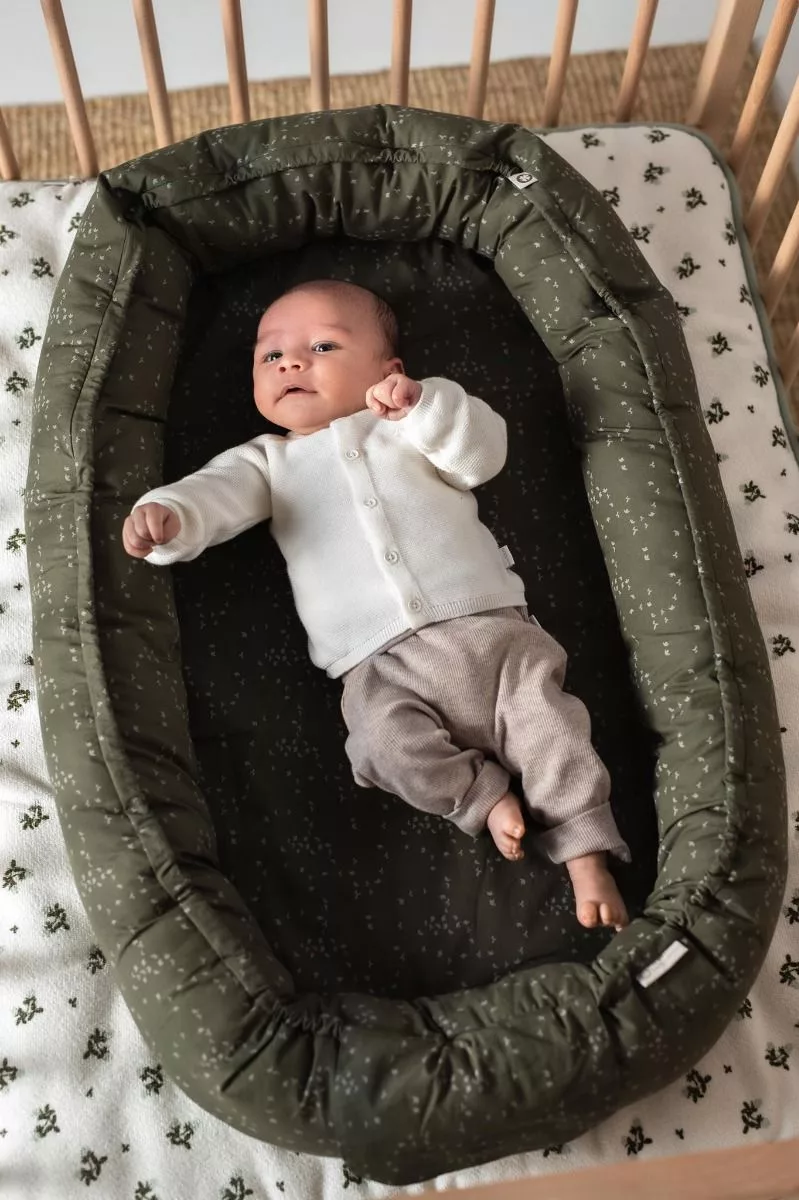 Het Babynest Noppies biedt een knusse, veilige omgeving voor je baby. Het is gemaakt van zacht katoen en heeft verstelbare koordjes, zodat je het nestje kunt aanpassen naarmate je kindje groeit. Ideaal voor korte dutjes en rustmomenten, zowel thuis als onderweg, en eenvoudig te wassen voor hygiëne.