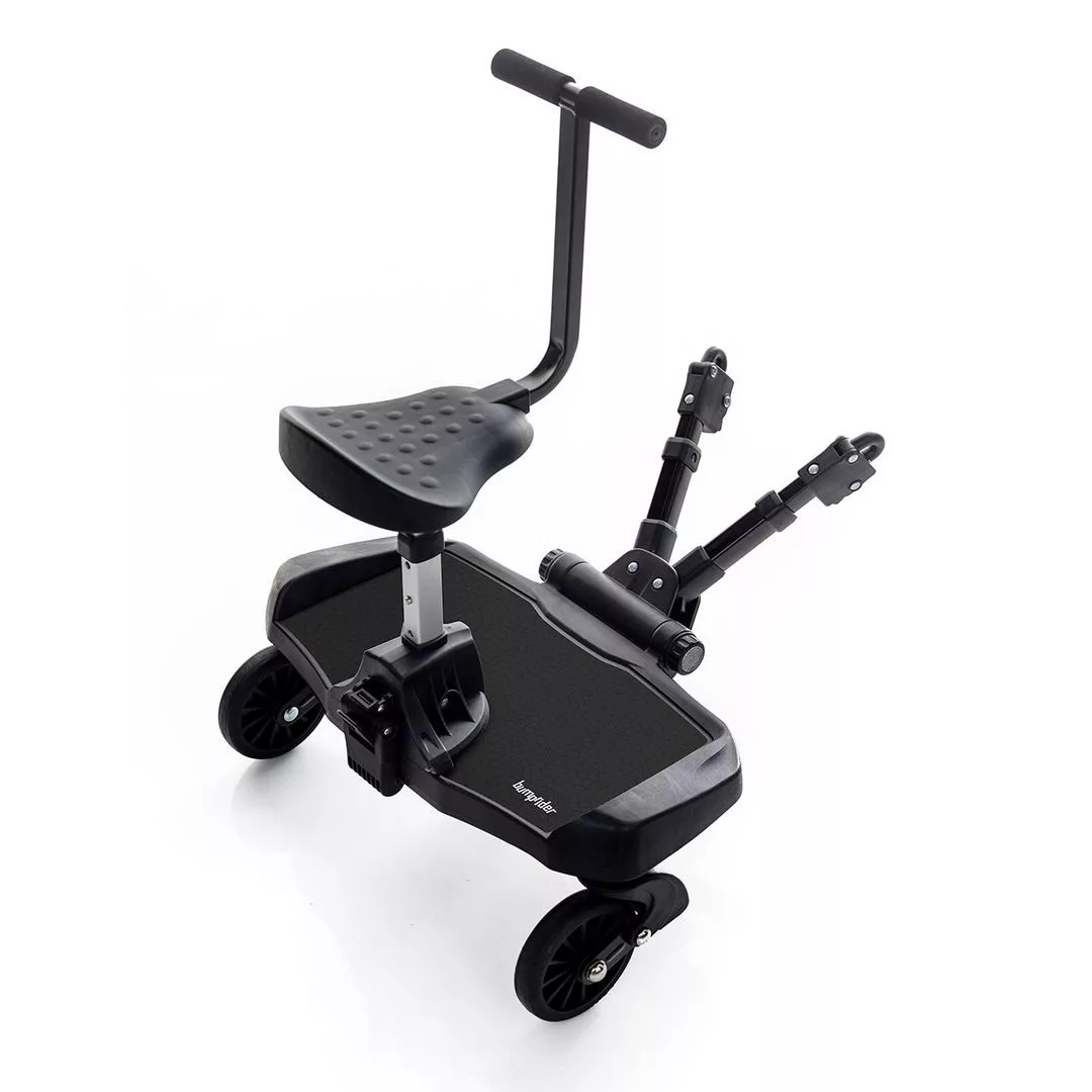 Met het Bumprider Plus Sit Up Meerijdplankje geniet je kind van een comfortabele wandeling, veilig staand of zittend tussen jou en de kinderwagen. Dit universele meerijdplankje is ideaal voor ouders met meerdere kinderen, waarbij het ene kind op het plankje staat of zit, terwijl het andere kind in de kinderwagen zit. De Bumprider is voorzien van uitgebalanceerde vering voor stabiliteit en comfort tijdens de wandeling. Eenvoudig en snel te monteren zonder gereedschap, en met een extra montageset kun je gemakkelijk wisselen tussen twee verschillende kinderwagens. Belastbaar tot 20 kg, geschikt voor kinderen van 2 tot 5 jaar.